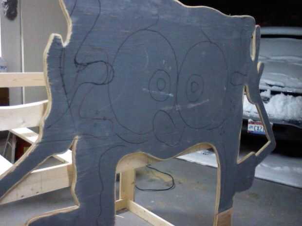 Mi hija hacia fuera creció su cama de bob esponja que le hice. así que decidí usar la cara para hacer una señal de venta que uno pierda conduce por el camino. todo que hizo fue añadir un tablero en la parte posterior de su boca y pintura venta de yar