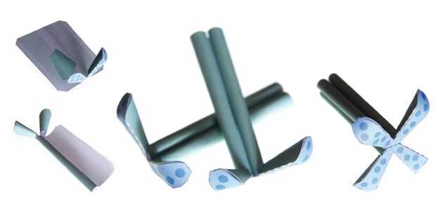 3. Los tentáculos tienen que ser enrollado muy apretado. Usted puede intentar hacerlas rodar alrededor de un repuesio de la pluma de bola por ejemplo, o a la vuelta de mismo. Cuando termines con los dos pares, puede pegarlos juntos a sus espaldas.