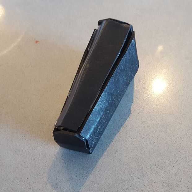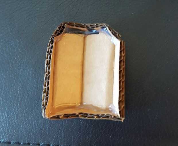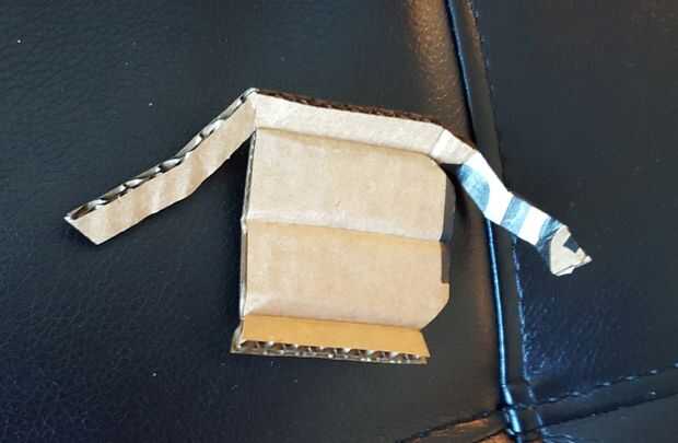 Para doblar el extremo del telémetro, utilice la plantilla PDF adjunto a este instructable para dibujar las líneas de plegado (imagen 4) y doblar con su regla de metal (imagen 5). Porque esto es una parte más pequeña de solo, prefiero crear esta parte de cartel-tablero o tablero de estera como pliegues y acabados mejor que el cartón corrugado (imagen 3). Pegar por el interior para evitar las costuras descuidadas y usar imagen 6 y 7 como su guía.