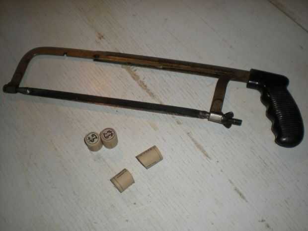 Sólo usé una sierra normal. Yo uso los tapones pequeños para pan pescado.