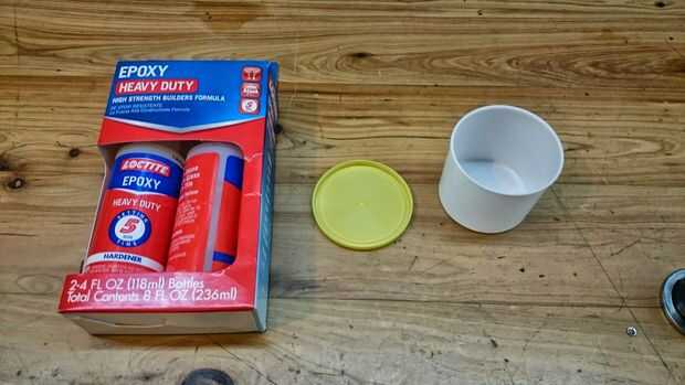 Usar epoxy de 5 minutos para estas cosas porque se seca rápido y es difícil. Mezclé el epoxi en una vieja taza de masa de juego. mantener los viejos tazas de masa de juego. ahora tiene epoxi por lo que simplemente echaste a perder todo.