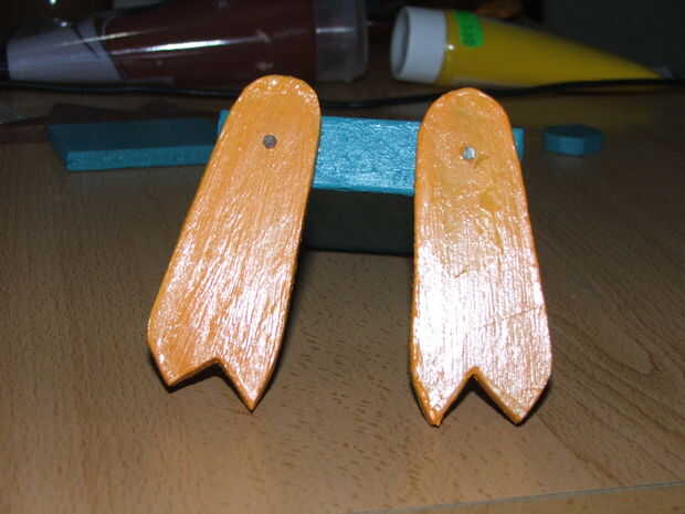 La primera parte que montado era la cola. Solo lo pegue en el centro de la parte posterior del cuerpo utilizando pegamento de contacto o de madera. Ya que es una gran superficie pegará perfectamente.