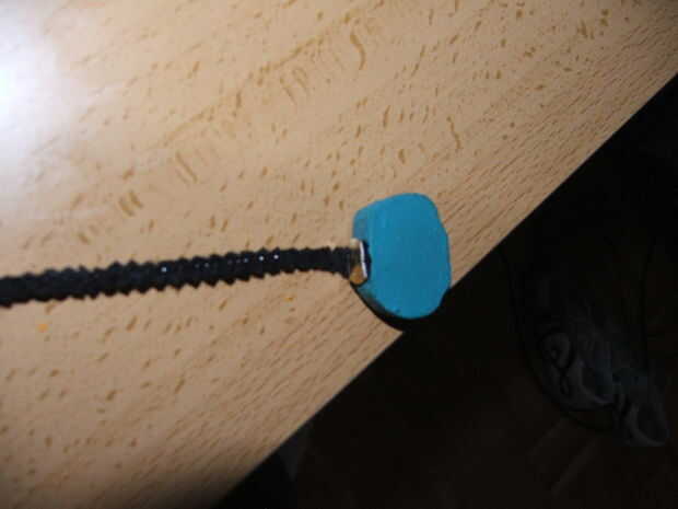 Para unir cada brazo a la mano y el cuerpo principal, hacer un pequeño lazo en cada extremo del limpiador de pipa y unirse a uno de ellos a la mano y el otro para el cuerpo con las chinchetas.