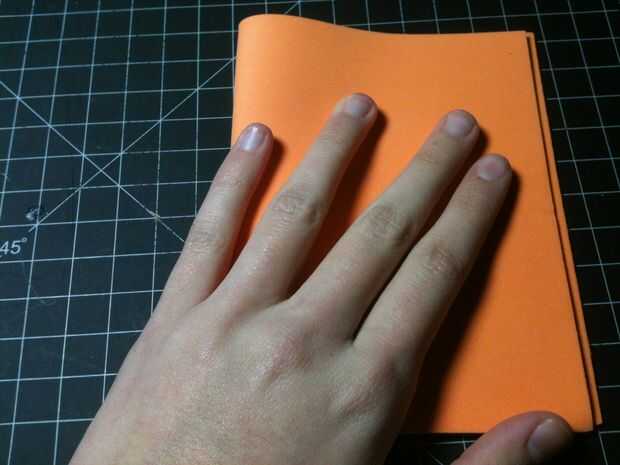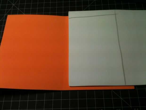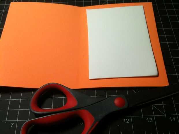 A continuación, tome su hoja color complementario de espuma. Coloque en una de las mitades de la hoja principal de la espuma y decidir cómo desea el soporte de horquilla para ser. Marca un contorno de un rectángulo pequeño con un lápiz. Después de hacerlo, corte el rectángulo hacia fuera y utilizarlo para cortar un segundo rectángulo idéntico.