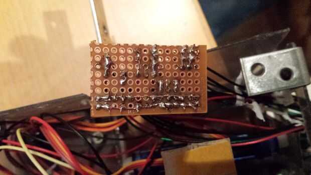 Recomiendo el circuito de soldadura, en lugar de usar el protoboard en el prototipo terminado. Como el robot se moverá rápidamente, lo más probable es que los cables de prototipos pueden venir accidentalmente perder mientras que usa el robot.