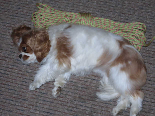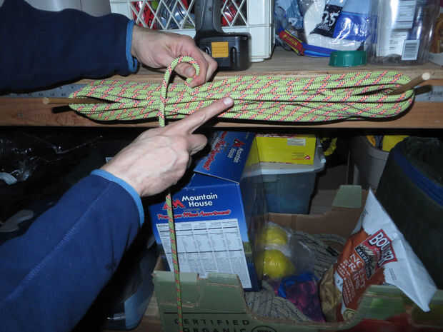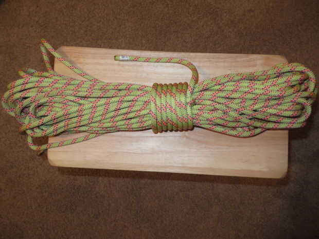 En primer lugar, inserte las dos clavijas. Usé las dos clavijas más distantes, como yo soy arrollar una ligera cuerda de escalada.
