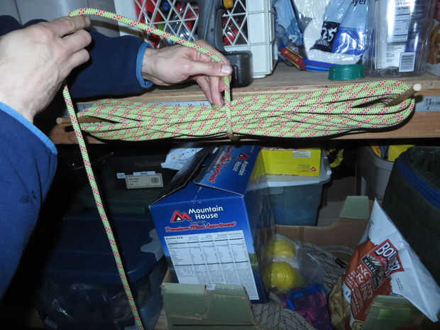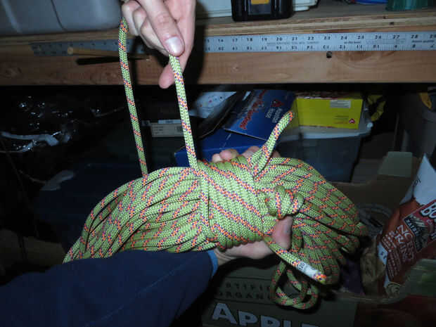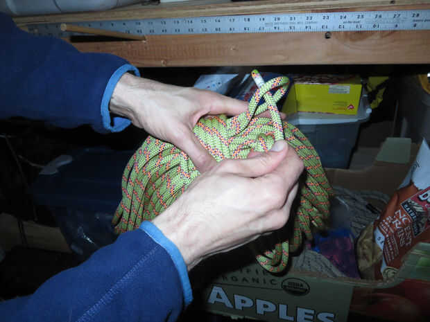 Relájese los vientos ocho o así. Mientras haces esto, tratar las bobinas de cuerda como una baraja de cuidadosamente arreglado tarjetas que no desea mezclar accidentalmente. Si puré los lazos de la cuerda a través de unos a otros, o lanzar al final de toda obra sobre el extremo, probablemente puede conseguir que el enredo.