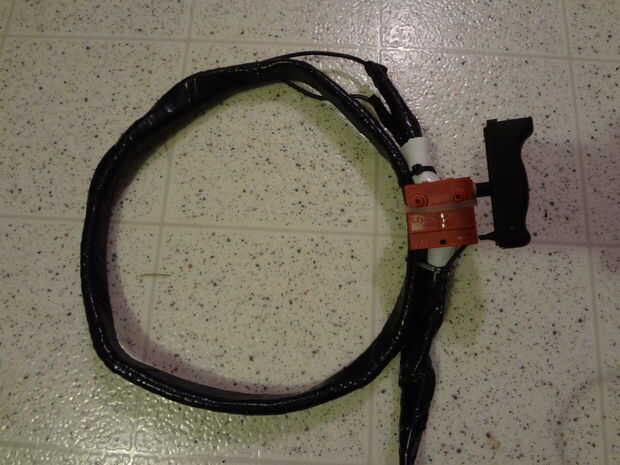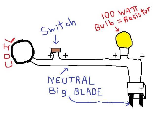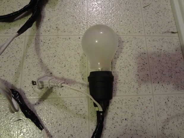 Una vez tuve mi bobina redonda recogí todos los materiales necesitan y averiguaron cómo iba para cablear todo. Coloco la bombilla como cerca de la clavija como sea posible así que podría simplemente colgar contra la pared cuando está conectado y estar alejados del proceso de desmagnetización. Alambré el gatillo donde pude montarlo directamente en la bobina utilizando lazos de nylon y cinta aislante para sujetarlo firmemente. De esta manera podía apretar el gatillo interruptor con la misma mano estoy sosteniendo la bobina con la que hace que sea mucho más fácil. He utilizado una bombilla de 100 vatios como una resistencia pero si quieres un campo electromagnético más fuerte puede usar una bombilla de potencia más baja pero a mi me funciono perfecto la de 100 vatios. Esto es de gran alcance.