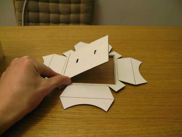La foto muestra cómo las partes son pegadas a la parte inferior. Lo siento no Tomé fotos antes, pero las formas impresas en el paso siguiente dan la idea de!