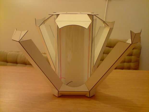 La tapa era una versión modificada de la parte inferior, con un borde de 1mm cortado y un borde biselado interno para evitar que se doblan en sí mismo. Se ha añadido una línea de puntuación en la parte inferior de la tapa para permitir que abrir correctamente.