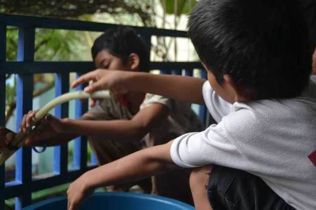 Esperando el agua, que es pulsada - idealmente mitad agua y mitad aire.