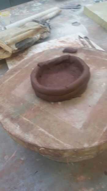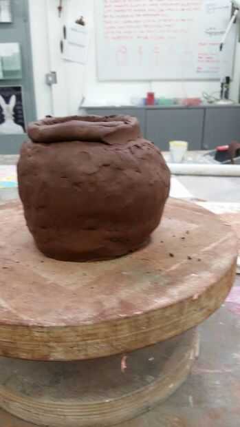 3. Conecte las bobinas más hasta que estés satisfecho con la altura de tu olla. alisar los lados como construyes la olla.