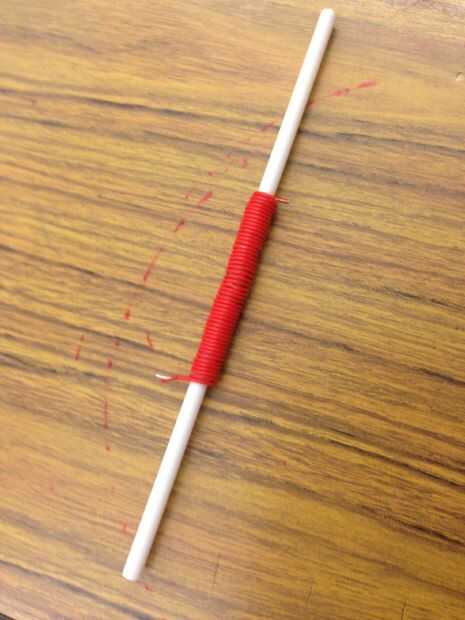Una vez hecho esto, coloque el alambre desde el lápiz y sobre la paja. (Asegúrese de que los dos extremos de la tira y dejarlos accesibles).