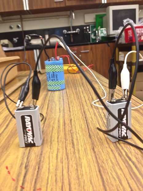 Conecte las baterías en serie y coloque en el condensador con pinzas para cargar.