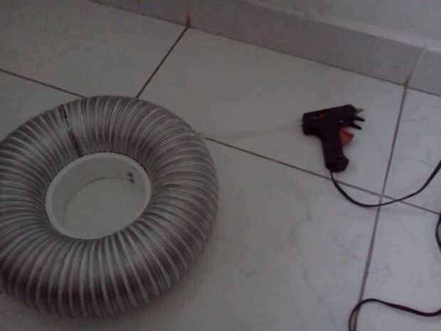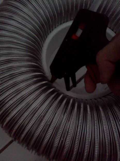 Pegar el toroide a la brida, yendo alrededor de la circunferencia. Dependiendo de cómo usted va a conectar a la Tesla secundario a la toroide, puede pegar la ranura restante en el tubo ya sea ahora o más adelante en el proceso. Por favor vea el siguiente paso para más aclaraciones.