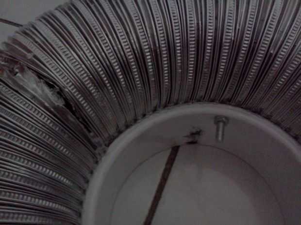 Ser demasiado barata para comprar estos. Decidí hacer una conexión atornillada. Taladré un agujero a través de la brida y el tubo de aluminio. Luego, inserta un tornillo por el conducto de aluminio desde el interior del conducto hacia la brida de aluminio y utiliza las tuercas para sostenerla. Ver fotos de una explicación. Esto no es ideal; pero funciona bastante bien.