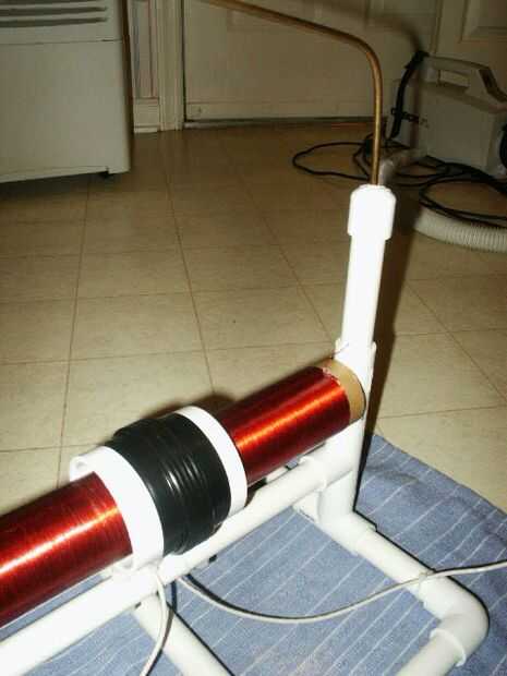 Perfore agujeros de 3/16 Avos en el centro de dos casquillos de la pipa del PVC para los terminales. Perforaciones pequeñas--cerca de 1/8 pulgada--en los tubos de soporte frente a los extremos de la bobina secundaria a los cables del secundario a través de la alimentación. Vea el paso sobre las terminales para las conexiones finales.