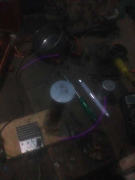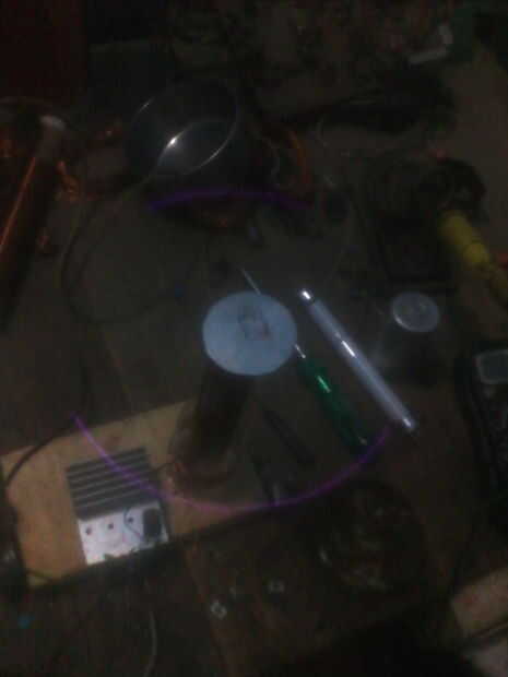 Aquí es un proyecto que utiliza energía de radiofrecuencia generada por una bobina de Tesla pequeña, bipolar para energizar un anillo de lámparas de cátodo frío, multicolor. Como con cualquier dispositivo de alta tensión, tenga precaución y buen juic