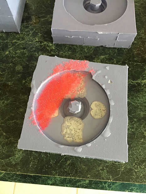Para hacer una pieza de tubo color verter en diferentes colores de resina en capas, dejando el molde establecido un poco entre capas. Si usted no deje que se establece entre capas el brillo flotará hacia el fondo del tubo.