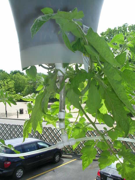 Mi sistema tiene cuatro macetas y un depósito. Hay una manguera desde el embalse que se extiende horizontalmente debajo de las macetas. Cada plantador tiene una manguera en la parte inferior que es grasa lo suficiente como para contener la mecha. Esta manguera se conecta a la manguera horizontal. La mecha es cerca de 10 pulgadas de largo con la mitad de ella en la manguera y la mitad dentro de la maceta. Hice el depósito de una sección larga de 4' 4" de diámetro del tubo de PVC.