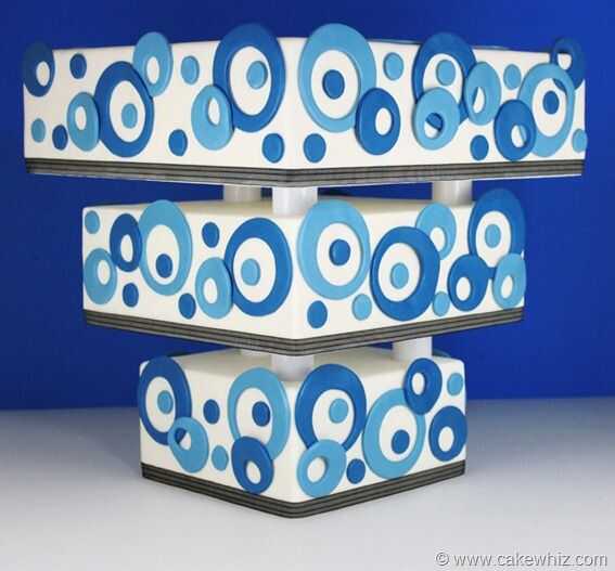 más niveles tortas comienzan con un pastel grande como base y las tortas poco a poco recibirás más pequeñas como vas subiendo. Yo quería hacer lo contrario y hacerlo boca abajo.