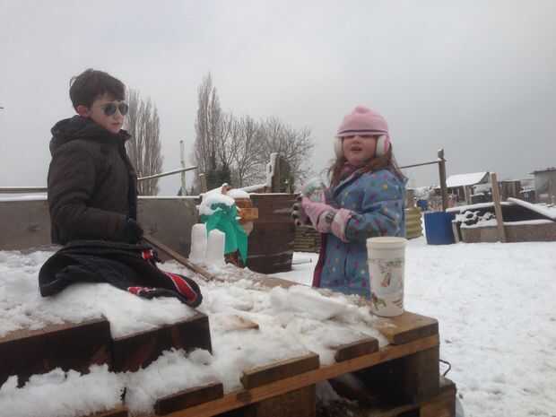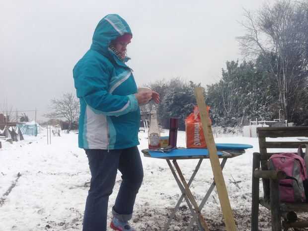 Por lo tanto, es difícil mantener tu comida y utensilios encima de la nieve. Tienen una tendencia a hundirse en la nieve y se pierden. Para evitar esto configuramos una cocina de campamento, que era en realidad una vieja mesa dañada de UV que teníamos ahí. También utiliza una pila de palets como mesa improvisada.