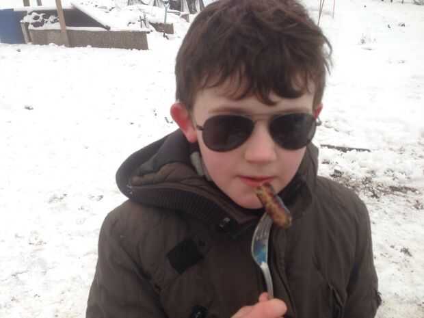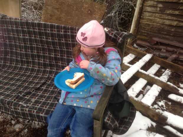 Así que después de una mañana duro trabajo de incendios del edificio y de beber chocolate caliente, una salchicha agradable o dos en la nieve es muy gratificante. Siguió con más lucha de bola caliente chocolate, muñeco de nieve y nieve.