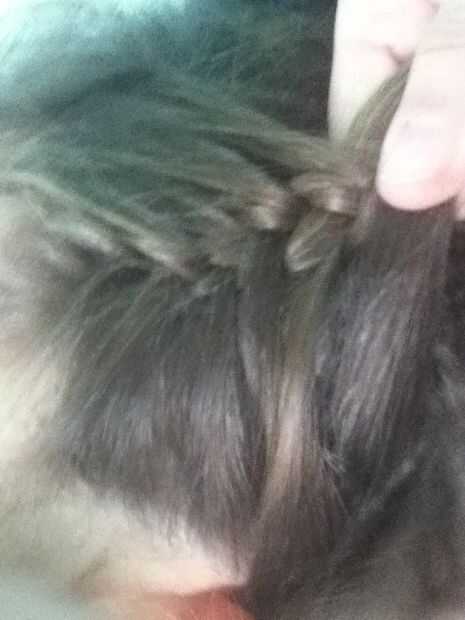trenza francesa a través de la cabeza en una trenza de lado:En primer lugar comenzar por reunir una pequeña cantidad de pelo y ponerlo en tres secciones.Comience cruzando la sección izquierda de la sección media.En la sección derecha se reúnen más pe