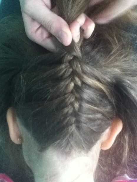 trenza francesa a través de la cabeza en una trenza de lado:En primer lugar comenzar por reunir una pequeña cantidad de pelo y ponerlo en tres secciones.Comience cruzando la sección izquierda de la sección media.En la sección derecha se reúnen más pe