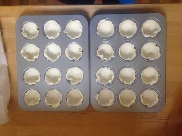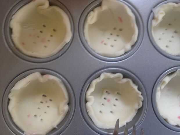 2. Cortar el hojaldre en 24 círculos (el círculo debe ser un poco más grande que el círculo superior de la bandeja de mufifn)