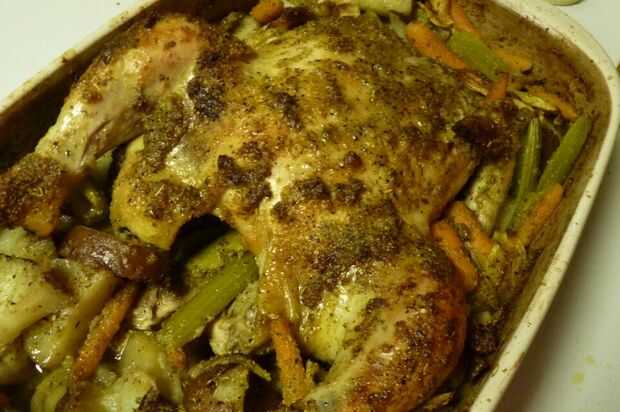 asado es una forma simple y clásica para cocinar un pollo, y las aves que son deliciosas cada vez.Esta receta es tan básica como obtiene - con tan sólo 5 minutos de tiempo de preparación, puede sacar el pollo asado terminado del horno aproximadamente