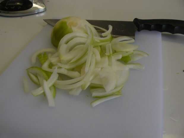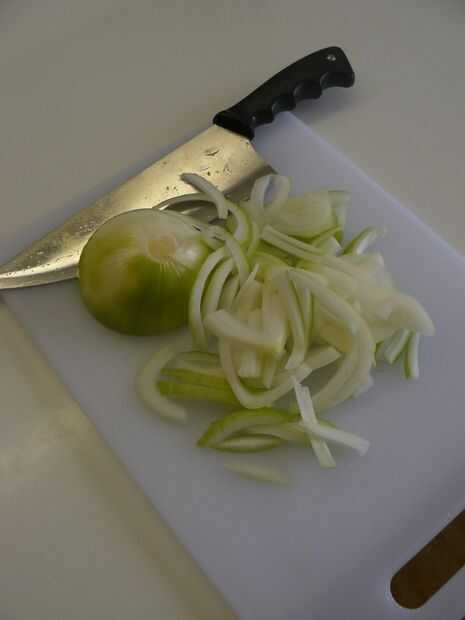 La proporción de cebolla vs soda, azúcar y sal es aproximada, pero resultará demasiado bicarbonato de sodio en hierro sabor cebolla, que no desea.