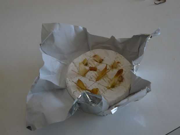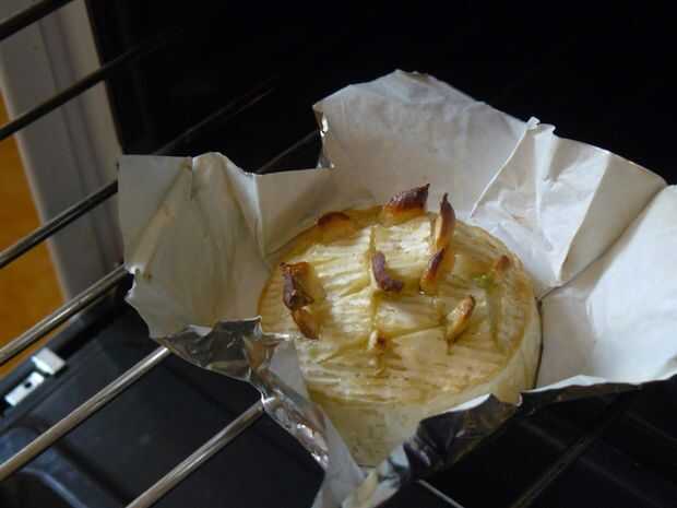 Ahora cortar finamente los dientes de ajo y luego inserte las rebanadas recién materializted las grietas de camembert. Ir, pulse en, no tengas miedo. Cortar el bollo y el camembert en su envoltorio al horno, que es oscilante a 180 º c/350 º f. Si desea insertar algún otro sabor en el queso, como tomillo, hojuelas de almendra, miel (que sería difícil debido a su liquidez) o cualquier otra cosa, se dan cuenta ahora y rápidamente saca el queso y hacer las paces. Nuevamente en el horno el camembert va!