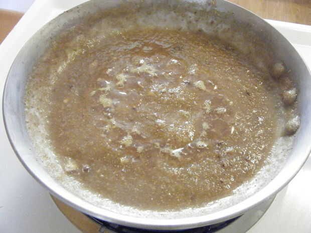 14. una vez que la fruta puré gruesa tomar otra vez fuera del fuego.
