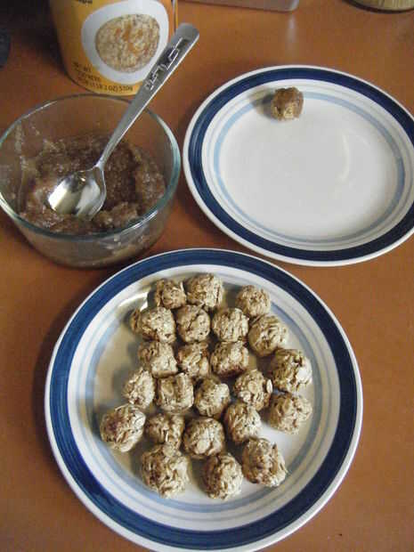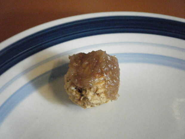 Si usted está realmente atrevido puede probar un tratamiento usted mismo. Lo hice porque quiero para asegurarse de que lo que estoy haciendo mis perros realmente tiene algún sabor. Es algo así como una barra de granola mantequilla de cacahuete con un centro suave y fig jam en la parte superior.