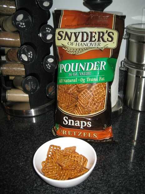 Los pretzels que uso son perfectos. Son de Snyder de Hannover y son aproximadamente 1 x 1 pulgada cuadrada y forma una red pequeña (no pero la mantequilla los sabores). He visto a rueda de carro en forma de rosquillas que deben trabajar o probablemente podría salirse con mini tradicionalmente en forma de rosquillas.