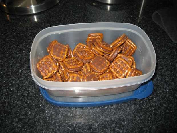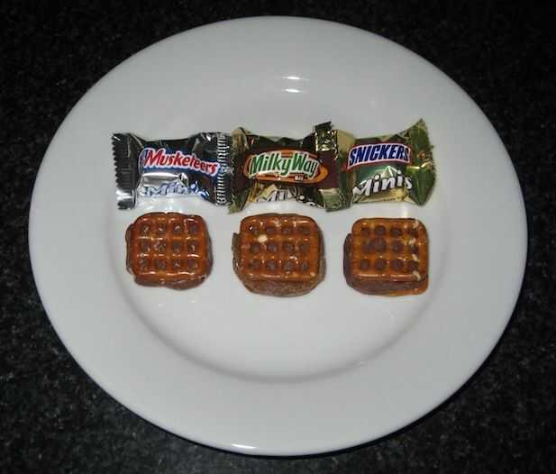 También experimenté con miniatura 3 Musketeers, Milky Way y Snickers. Son el tamaño perfecto para los pretzels. No tienen un montón de chocolate en el exterior así que no llenan las parrillas. Estaban todos deliciosos pero la vía Láctea parece ser el favorito en la oficina.