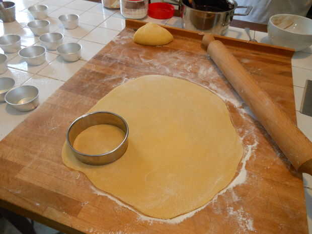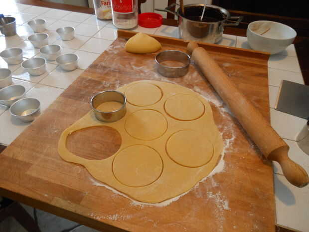 Nowroll la masa (me havespreadto un grueso ofSobre dos o tres milímetros) y con la ayuda de ofcircularcutters, obtainthe cupsandtheir tapas. Utilice cutterswiderthan necessarysothat la closeitwith de onceyou de overflowsandsealsbetter de tazas una tapa.