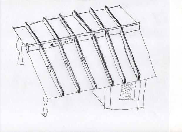 Tenga en cuenta que cada uno de los 2x4s en este bosquejo (no la media viga) coincide con un 2 x 4 debajo de la madera contrachapada. ¿Esto también significa que cualquier costuras en la madera contrachapada de 2 x 4 en la parte superior, ya que aseguramos sus costuras fueron directamente encima de la parte inferior 2 x 4, correcto?