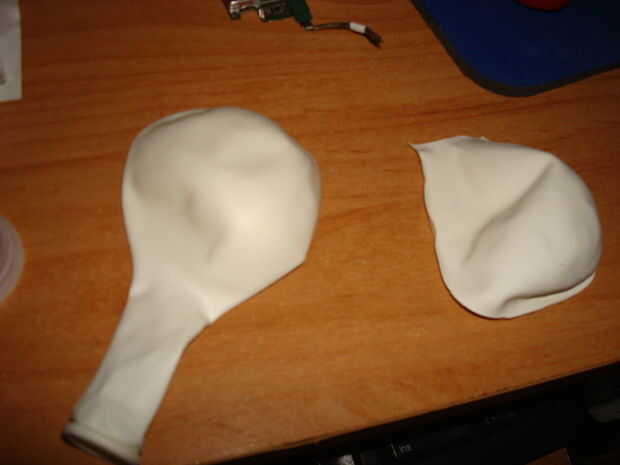 Luego tomar el balón y cortar por lo que parece la una a la derecha en el cuadro 3. Cortar por la mitad y luego corte el pat de la parte inferior donde se sopla.