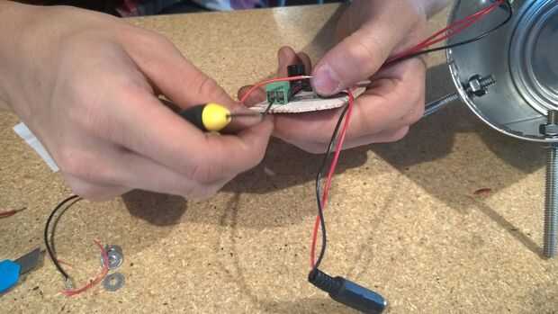 Si sabes de electrónica puedes construir tu amplificador irá dentro de la bocina o tambien lo puedes comprar en alguna tienda de electrónica. El amplificador trae el conector e interruptor, los introducimos por los agujeros hicimos y los aseguramos.