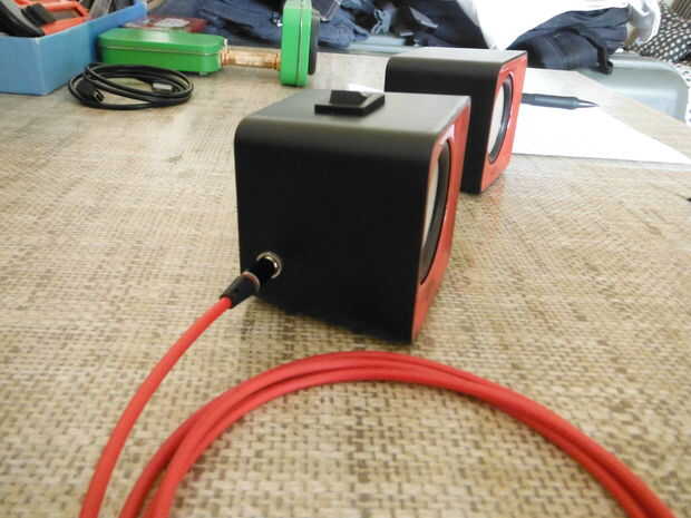 He comprado un conjunto de altavoces para ordenador USB powered super baratos a la venta por $4 en mi supermercado local un tiempo atrás. Por $4, pensé realmente no podía ir mal. Terminaron siendo underpowered y justo en todo no muy bien. Así que pensé que con unas ligeras modificaciones (nuevo amplificador, batería interna, etc..) Podría convertirlos en un sistema medio decente de altavoces de viaje. Puesto que eran tan baratos para comenzar con, no me preocupa demasiado si consiguen dañadas/destruidas, por lo que son altavoces pequeños ideal para llevar en viajes que acampan y similares.