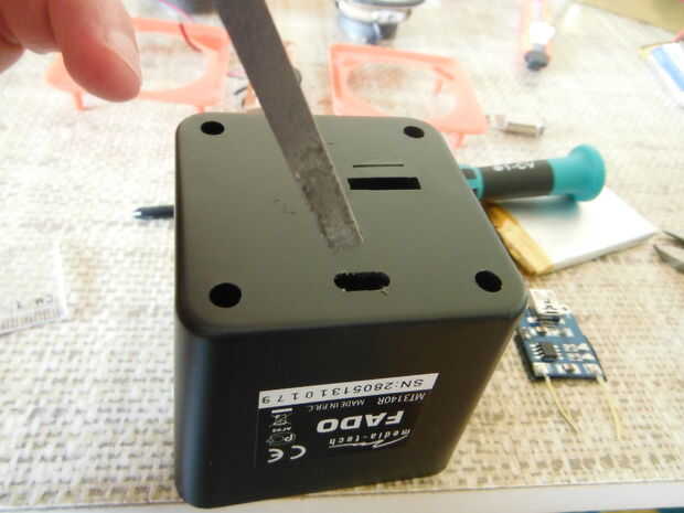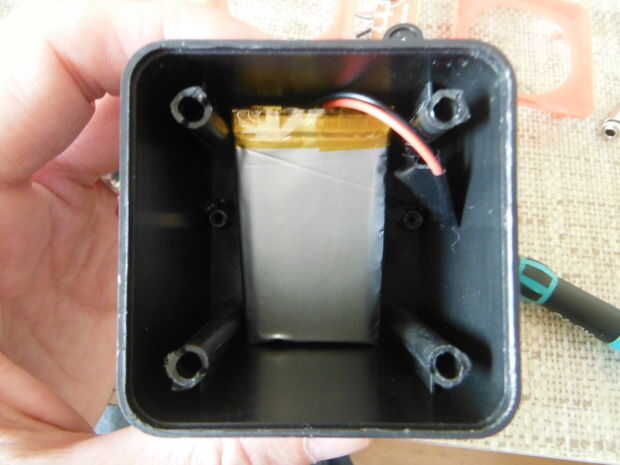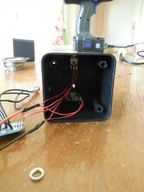 Este paso puede ser un poco complicado. No es muy difícil, tienes sólo de ver if y dónde que caben todas tus partes internas nuevas. Quieres probar y hacer todo (amplificadores, batería, cargador, interruptor de encendido, conector de 3,5 mm) cabe en una de las cubiertas del altavoz. Esto es solo para que los cables solos necesita ir entre las dos cubiertas son los cables del altavoz.