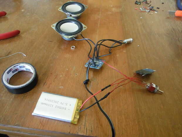 Pido disculpas por la falta de fotos de este paso. Si revisas mi sistema de altavoz lata Altoids Instructable, la configuración es muy similar a la y tiene un esquema detallado con muchas fotos.