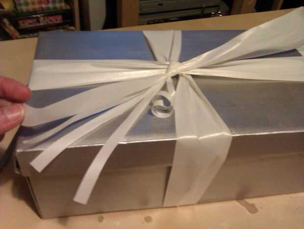 -aplanar la torcedura levemente con un dedo, luego bancos llevar las cintas de los otros lados de la caja