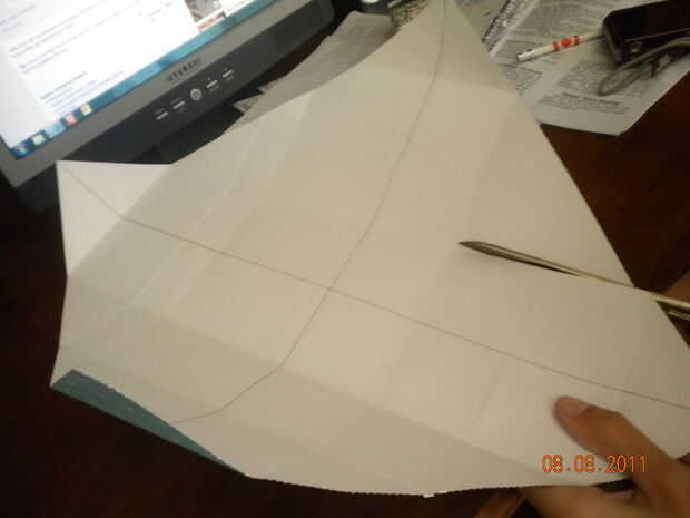 De abrir la página otra vez. Tomar un par de tijeras y cortar tres plazas dos veces en oppostie lados.