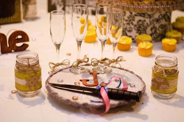 Compró un paquete de 4 de flautas de champán y había atado más la guita del yute en la parte inferior con arco.