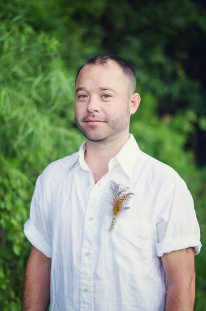 Se trata de mi marido lleva un buttoneer que hicimos terminando algunas de las plumas de los tarros de masón. Cada uno de los padrinos de boda llevaba uno así. Otra vez, la orden entera de plumas era alrededor de 40 dolares y que hicieron una gran diferencia. Usé en muchas cosas y todavía sobra toneladas.