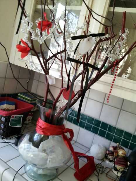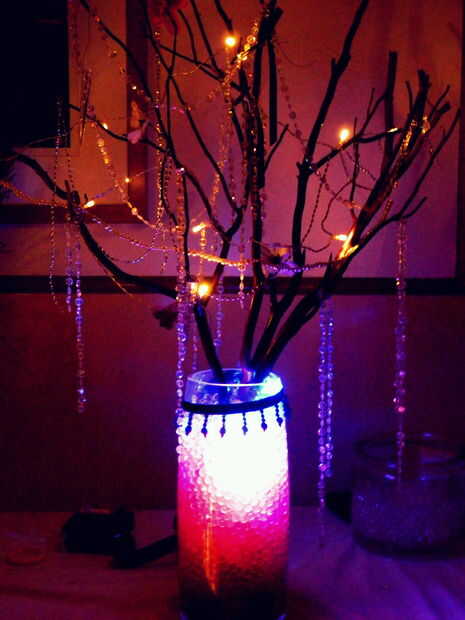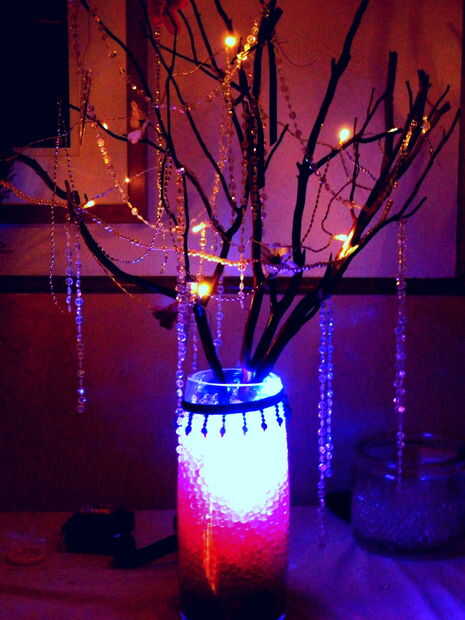 Queríamos tener una buena boda con invitados de 125-135 con un presupuesto máximo de $14.000, así que tuvimos que planificar y hacerlo más nosotros mismos. Gasté menos de 600 total en centros de mesa y flores de la boda. Esta es una recreación de cómo hice mi propio árbol cristalino de la manzanita