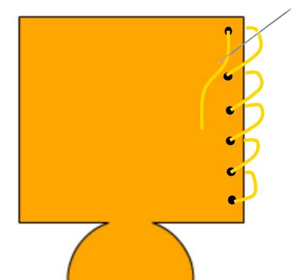 Una vez en la parte superior, asegúrese de que la aguja está en el interior y luego haga un nudo en la parte superior para asegurar el hilo. Repita en el otro lado.